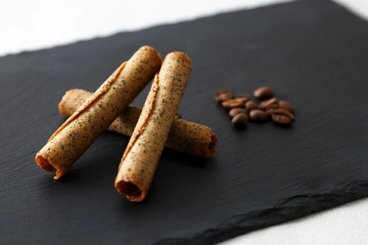 その香り豊かなコーヒーの粉を、繊細なロールラングドシャ生地に丁寧に練り込みました。