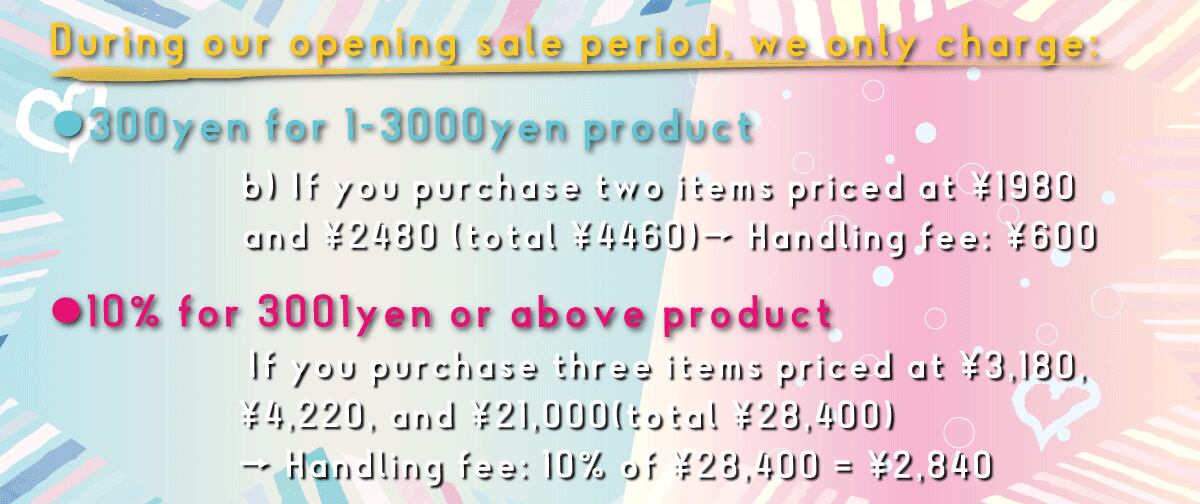 If your order includes both items priced at ¥3,000 or below and items over ¥3,000, the handling fee will be calculated as follows: